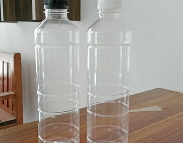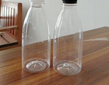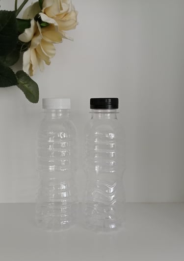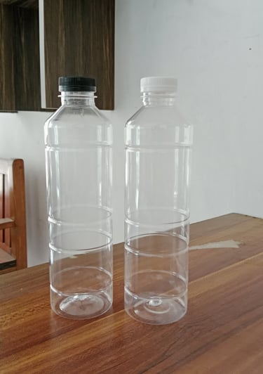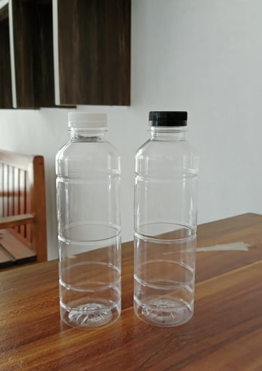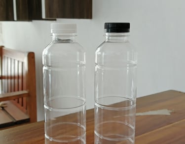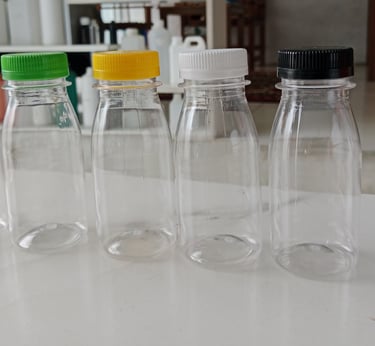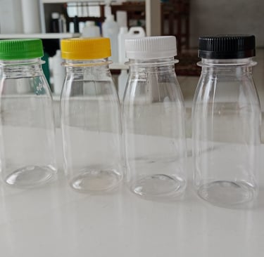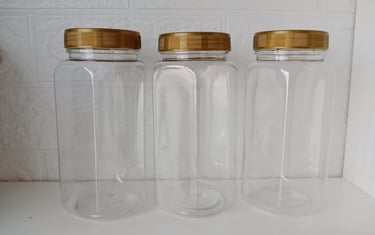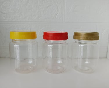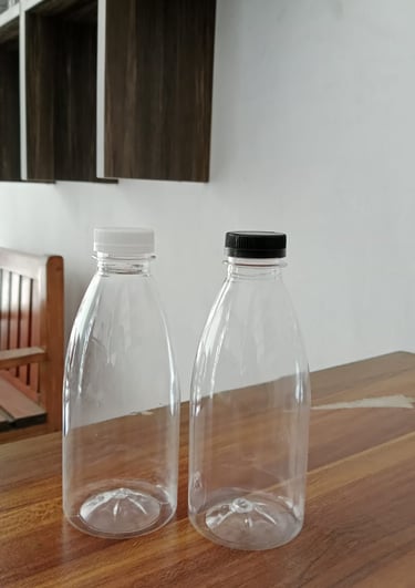 PET (Polyethylene Terephthalate) plastic bottle. Many people use this bottle to pack their drinks such as coffee, juice, honey, milk, or other powdered drinks. This bottle is very simple and has a unique shape. In addition, its minimalist shape makes the appearance more aesthetic.
